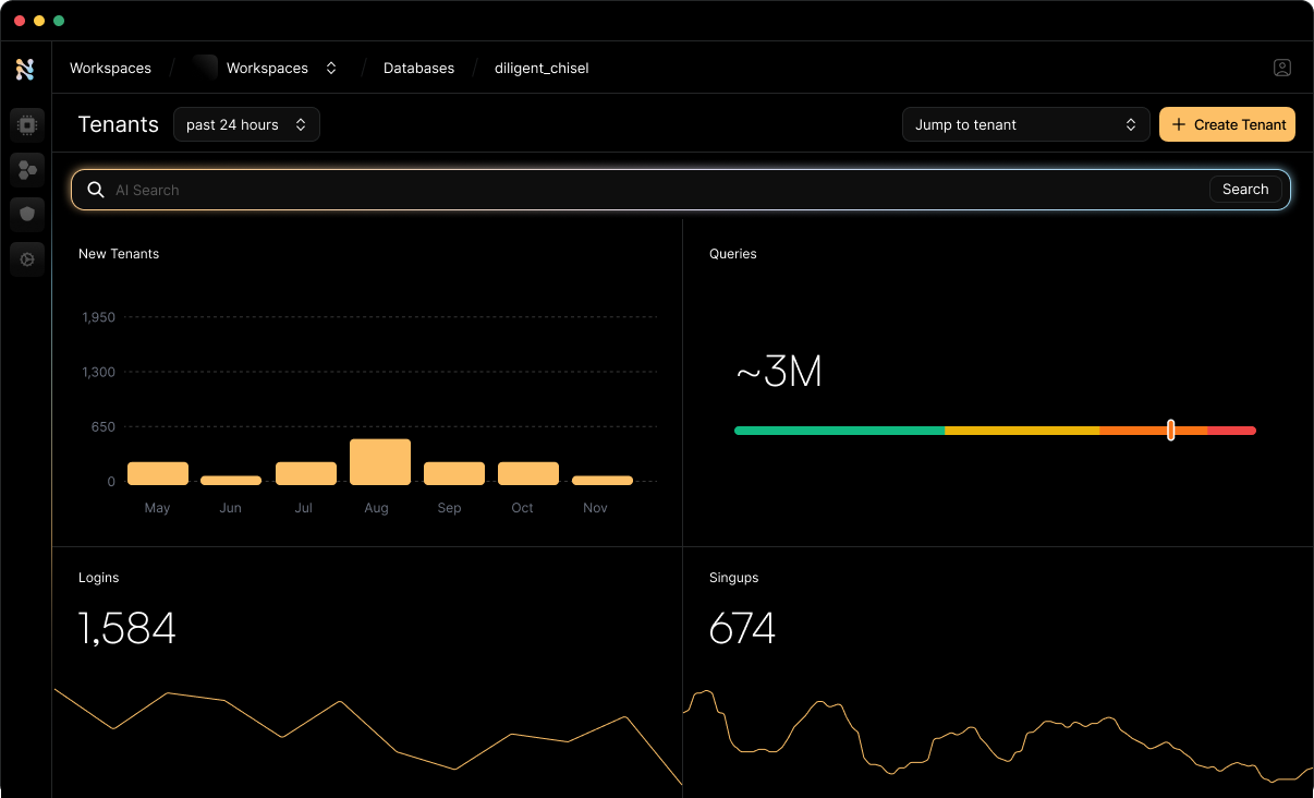 Everything about tenant management is hard. You typically start with a single database and place all the tenants on it. You tackle data isolation between tenants by implementing brittle permission logic at the application level or complex, hard-to-debug, row-level security policies in databases like Postgres. You turn on daily backups but have little idea how to restore data for specific tenants when customers lose data. You end up writing some hacky scripts that are slow and buggy to parse through the backups and extract the tenant data. Once the application has users, you run into your first performance issue. Some tenants are pushing more load, and others have large datasets causing queries to take more resources. This impacts other customers as well. You need help determining which customer is causing the impact and which ones are being impacted. To solve this, you migrate some tenants to dedicated databases, which requires building metadata and sharding logic at the application layer to manage all this. Schema changes, rollouts, monitoring, and developer experience become more complex. This was our story and every other SaaS company's story.