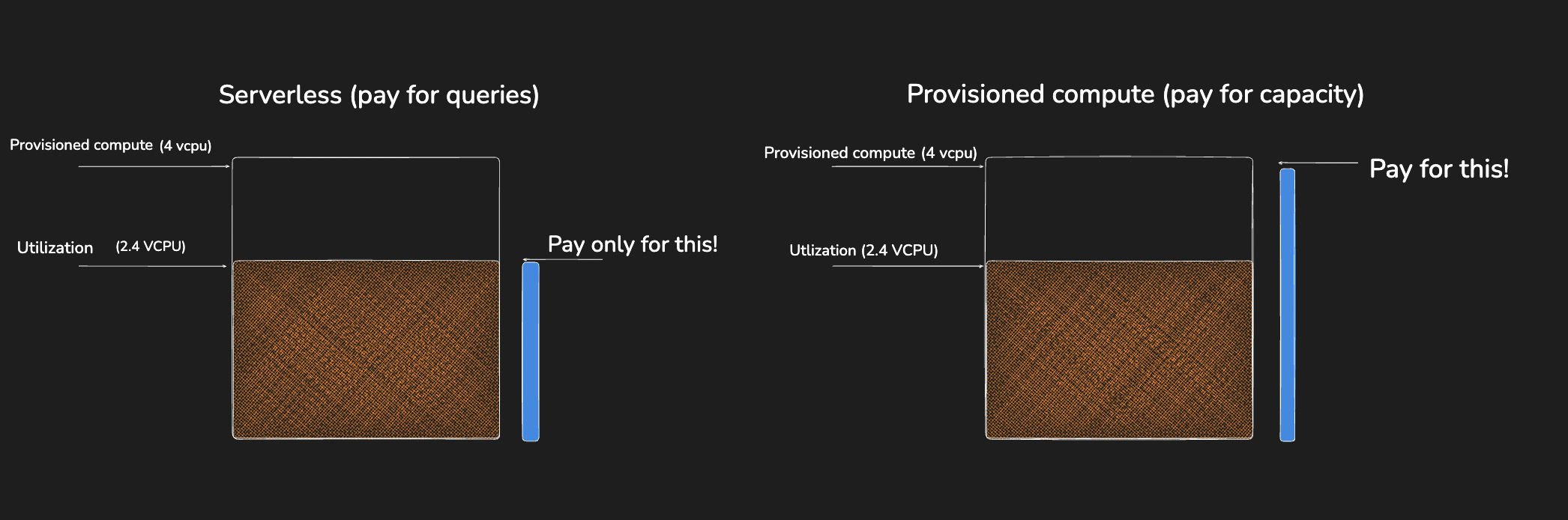 Pay for only queries on serverless and capacity on provisioned compute.