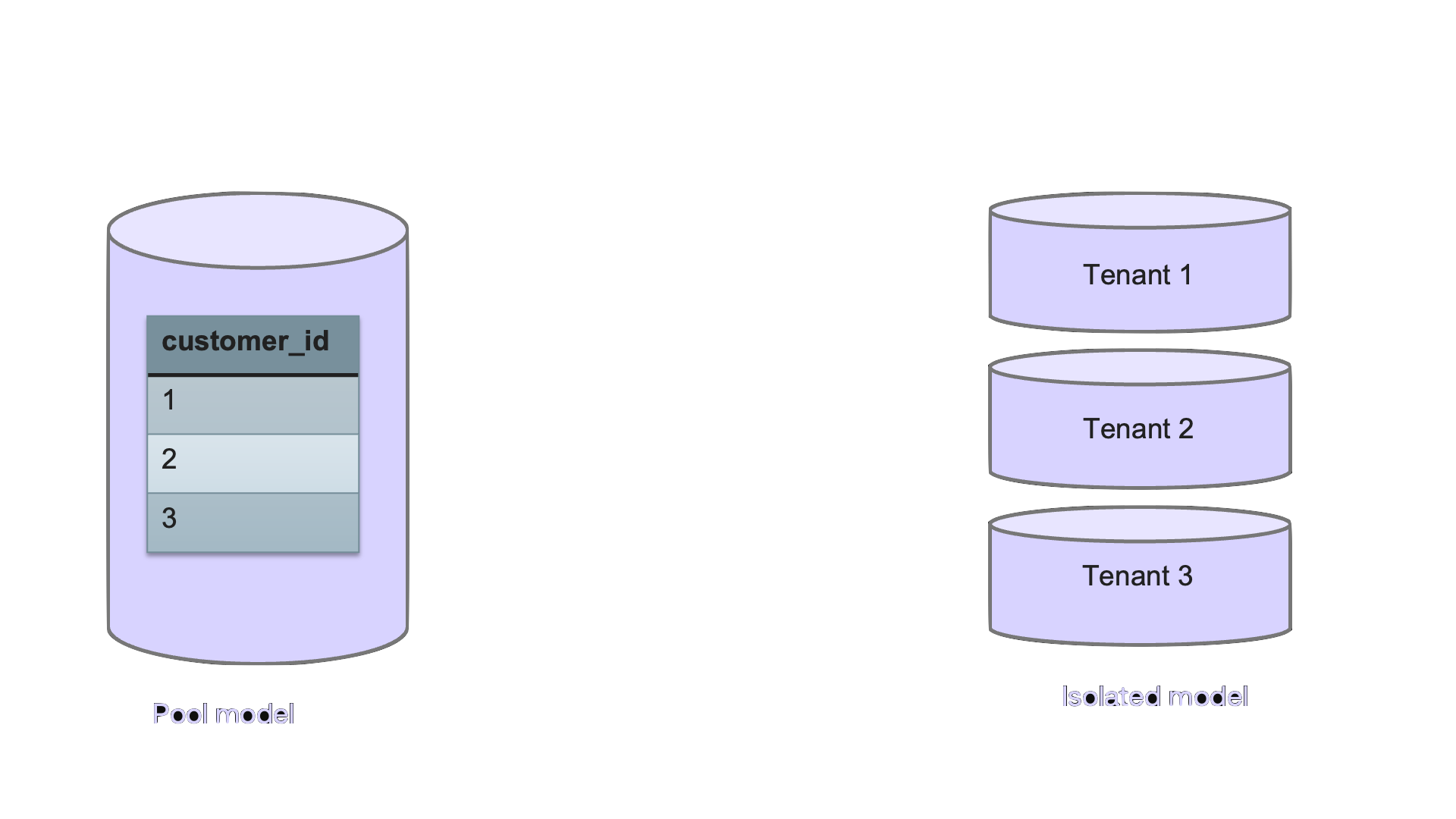 Since multi-tenant applications are so common, there are design patterns on how to model tenants in a database. The common models are either Isolated, where each customer gets a separate database, or Pooled where a single database is used for all tenants and each table has a column that maps to the tenant that owns the data. Generally speaking, the pooled model is more cost effective and scalable. But because databases don't actually do anything to support this model, it requires building a lot of the tenant-aware capabilities yourself and hope no one ever misses a "where" clause. The isolated model gives you all the tenant-aware capabilities "for free" but is challenging to scale effectively.