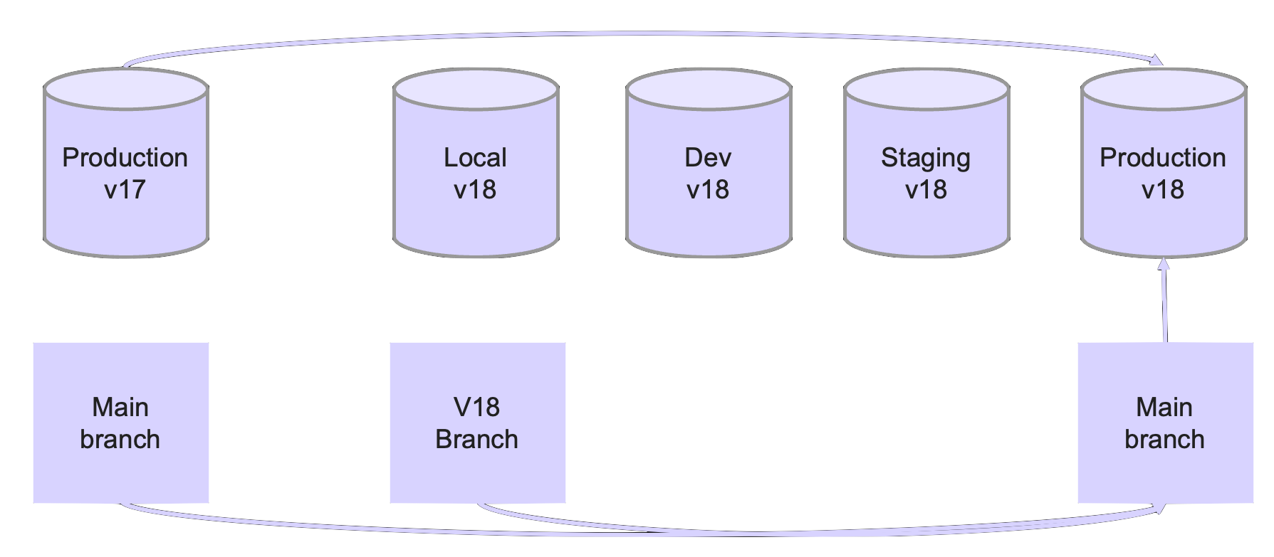 Ideally, a DB that would also be aware of multiple schema versions, allow us to flip between them and warn us before we push something incompatible to production (i.e. the main version used by the most critical applications).