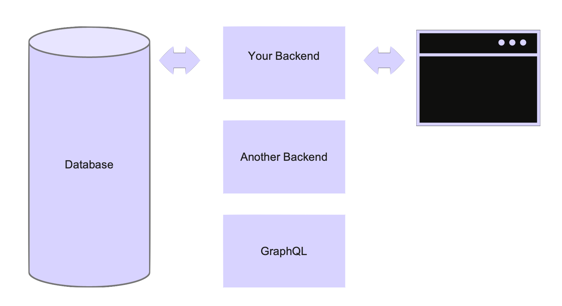 The backend typically has a lot of important business functionality, but it also serves as a translator. It accepts HTTP connections from browsers on one side, and has a connection pool to a database on the other side. A lot of what a backend does is receive REST requests over HTTP, translate them into SQL and send them to the DB for processing, then get the result, translate it again and send it back. We all wrote a lot of code that basically does that.